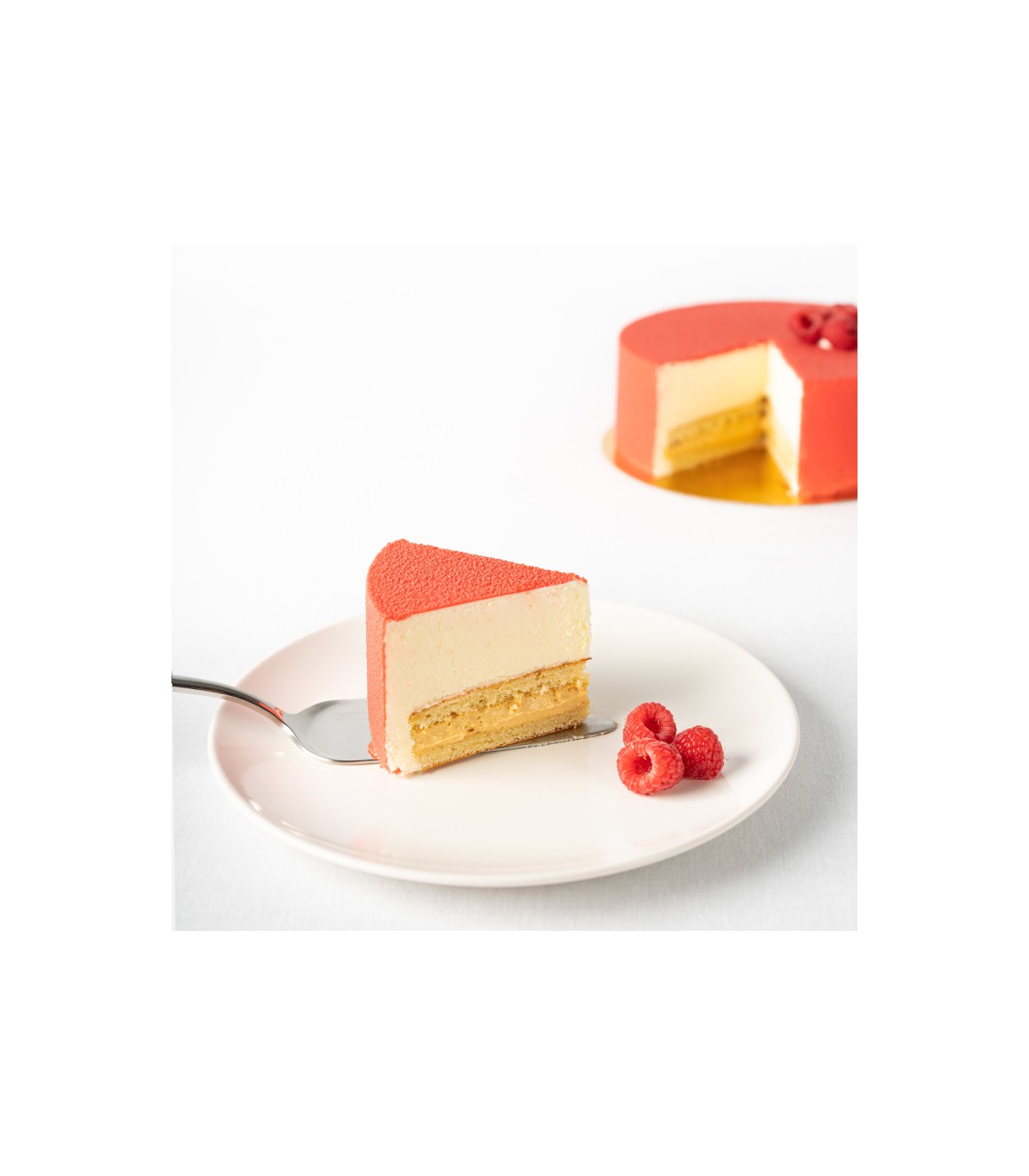 Un dessert esthétique et délicat qui saura ravir les yeux et le palais de vos invités ! Biscuit moelleux, crémeux beurre salé, bavaroise vanille, glaçage.Réalisé par notre partenaire Haart Patisserie